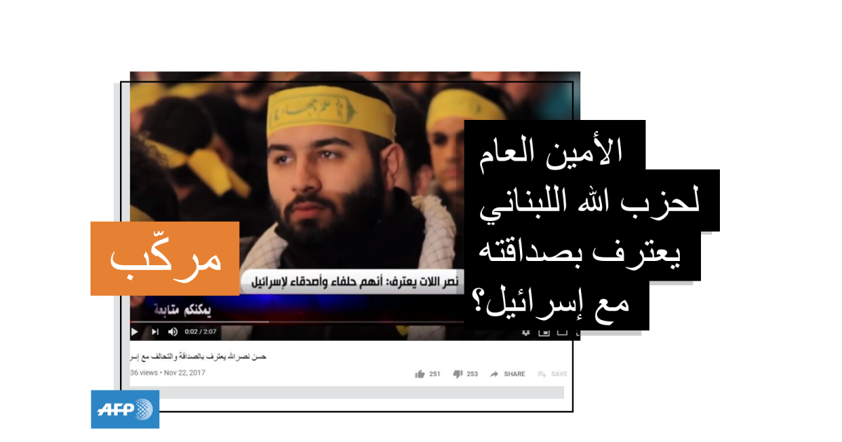 وبحسب ما وقع عليه فريق تقصّي صحّة الأخبار في وكالة فرانس برس، نُشر هذا المقطع لأول مرّة في الثاني والعشرين من تشرين الثاني/نوفمبر من العام 2017 على موقع يوتيوب بعنوان "حسن نصرالله يعترف بالصداقة والتحالف مع إسرائيل".