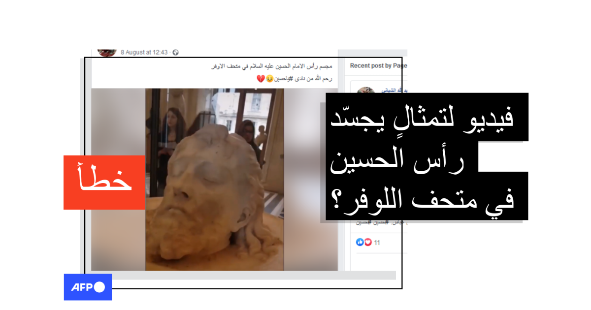تبدو في الفيديو منحوتة لرأس على طبق موضوعة في علبة زجاجيّة داخل ما يبدو أنّه متحف وجاء في التعليق الصوتيّ المرافق "...هذا هو رأس الحسين في متحف اللوفر..هذ هو رأس الإمام".