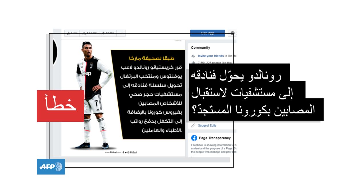 تواصل فريق تقصّي صحّة الأخبار في وكالة فرانس برس بتاريخ 16 آذار/مارس 2020 مع الناطق الرسميّ باسم مجموعة Pestana CR7 الذي أكّد أنّ "الخبر غير دقيق، لم نتلقّ أية إرشادات بهذا الصدد"، مضيفاً: "نعمل كفندقٍ وسنبقى فندقاً... لن نتحوّل إلى مستشفى".