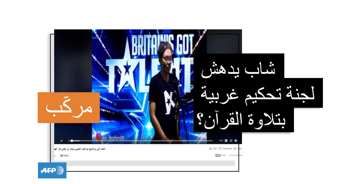 هذا المقطع الذي يُظهر شابًا يتلو القرآن في برنامج مواهب غربي مركّب