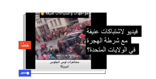 الصورة السياسة الأميركية تاريخ النشر 16/01/2026 هذا الفيديو لاشتباكات بين الشرطة ومتظاهرين مصوّر في فرنسا وليس لاحتجاجات منهاضة لسياسة ترامب في الولايات المتحدة