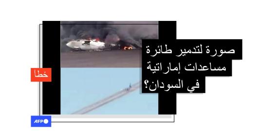 الصورة تاريخ النشر 10/11/2025 هذه الصورة ليست لتدمير طائرة إماراتية في السودان بل لطائرة يمنيّة استهدفتها غارة إسرائيليّة في مطار صنعاء