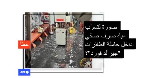 الصورة السياسة الأميركية تاريخ النشر 25/02/2026 هذه الصورة ليست لتسرّب مياه صرف صحّي داخل حاملة الطائرات الأميركيّة "جيرالد فورد"