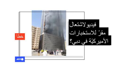 الصورة إيران تاريخ النشر 02/03/2026 هذا الفيديو يعود لحريقٍ عام 2015 في الشارقة وليس لاستهداف إيرانيّ لمقرٍ أميركيّ في دبي