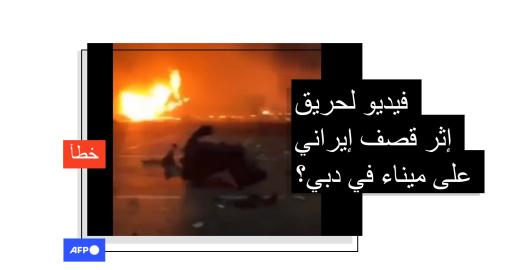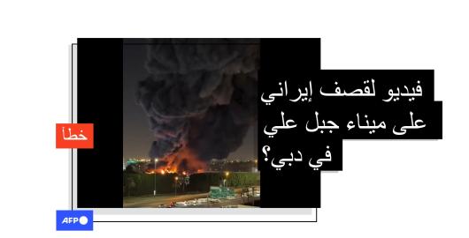 الصورة إيران تاريخ النشر 01/03/2026 هذا الفيديو مصوّر عام 2021 وليس لاستهدافٍ إيرانيّ لميناء جبل علي في دبي