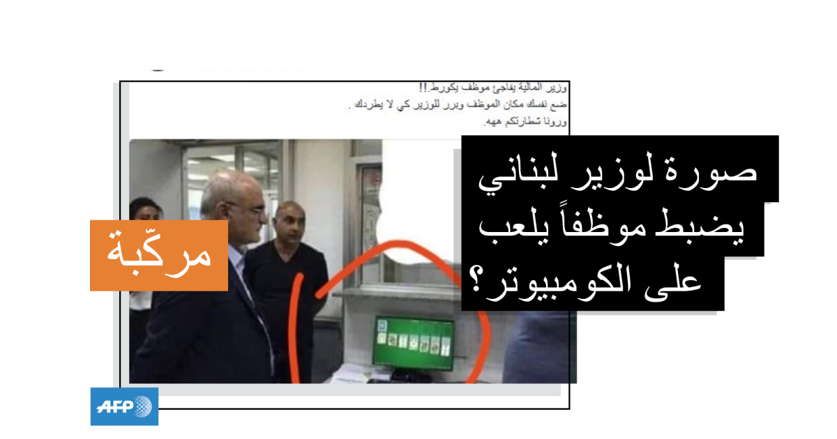 هذه الصورة لوزير لبناني يضبط موظفاً يلعب على الكومبيوتر مركّبة