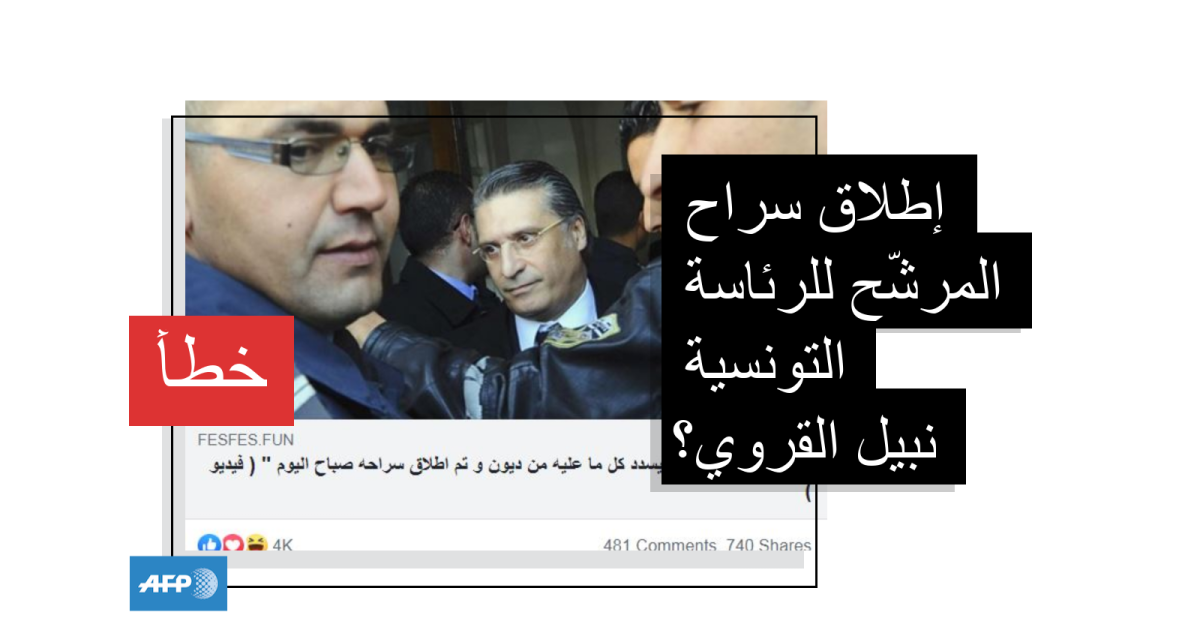 تداولت مواقع إخبارية تونسية وصفحات على مواقع التواصل باللغتين العربية والفرنسية خبراً مفاده أن السلطات أطلقت سراح نبيل القروي الذي يستعد لخوض الدورة الثانية من الانتخابات الرئاسية في تونس.