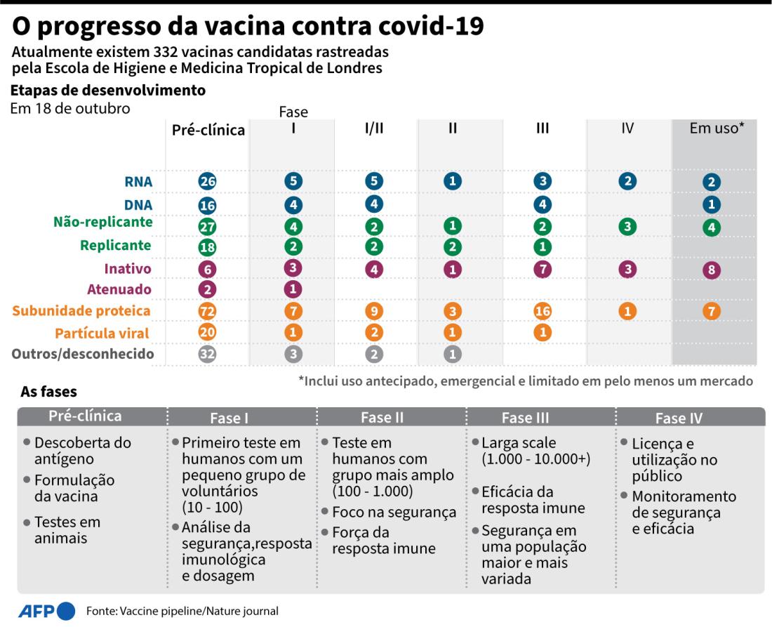 O painel de farmacovigilância da Organização Pan-Americana da Saúde (Opas) mostra que, em outubro de 2021, há oito vacinas com uso emergencial aprovado. Quatro delas estão em uso no Brasil, de acordo com a Agência Nacional de Vigilância Sanitária (Anvisa): Comirnaty (Pfizer/Wyeth), Oxford/Covishield (Fiocruz e Astrazeneca), Coronavac (Butantan) e Janssen Vaccine (Janssen-Cilag).