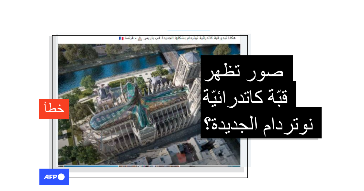 تظهر في الصور كاتدرائية نوتردام في باريس وقد أُبدلت سقيفتها بأخرى زجاجيّة. وكُتب في التعليق المرافق "هكذا تبدو قبة كاتدرائية نوتردام بشكلها الجديد في باريس".