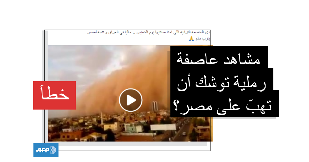 فأظهرت تجزئة المقطع إلى مشاهد ثابتة والتفتيش عنها على محرّكات البحث أنهما منشوران معاً قبل ثلاث سنوات في وسائل إعلام عدّة، وهما يصوّران في الحقيقة عاصفة ترابية هبّت على العاصمة السودانية في حزيران/يونيو من العام 2017.