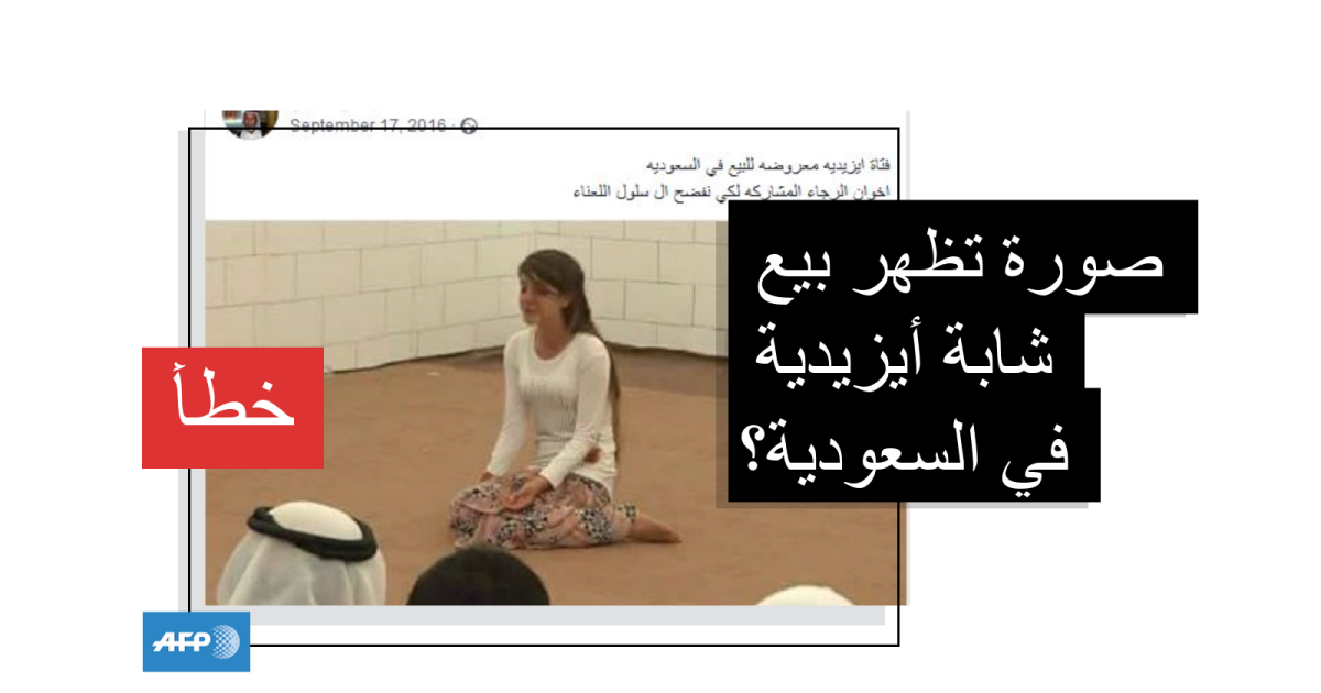 وجاء في المنشور المرافق للصورة "فتاة أيزيديه معروضة للبيع في السعودية"، ودعوة لمشاركتها.