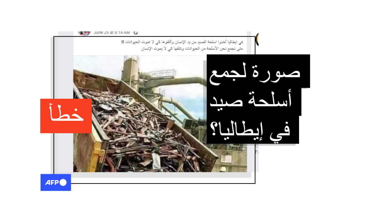 تظهر في الصورة شاحنة ضخمة تفرغ حمولة كبيرة من الأسلحة. وقد جاء في النصّ المرافق لها "في إيطاليا أخذوا أسلحة الصيد من أيدي الإنسان وأتلفوها كي تعيش الحيوانات...فمتى نحن نأخذ الأسلحة من أيدي الحيوانات ونتلفها كي يعيش الإنسان!".