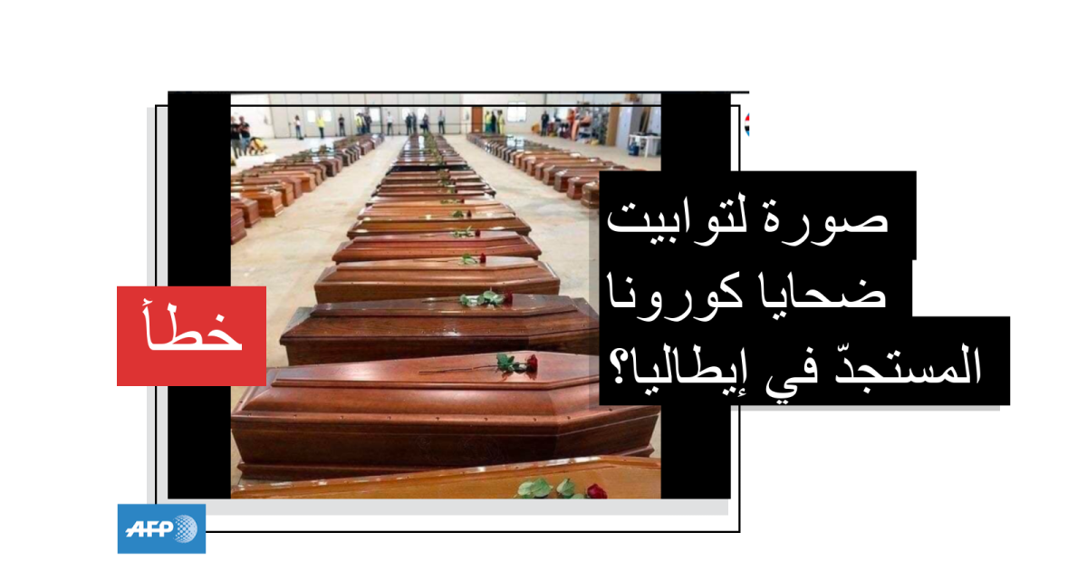 تظهر في الصورة عشرات التوابيت الخشبيّة داخل قاعة كبيرة، وقد وضعت وردة حمراء على كلّ منها. وقد جاء في النصّ المرافق للصورة "إيطاليا اليوم الصورة من مدينة بيرجامو (مقاطعة لومبارديا شمال إيطاليا)".