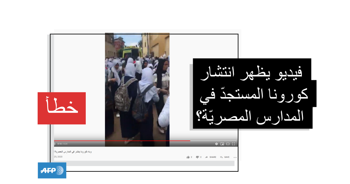 يظهر الفيديو حالة هلعٍ بين طالباتٍ أمام سيّارة إسعاف، وقد جاء في النصّ المرافق له "وباء كورونا ينتشر فى المدارس المصرية لدرجة حدوث وفيات".